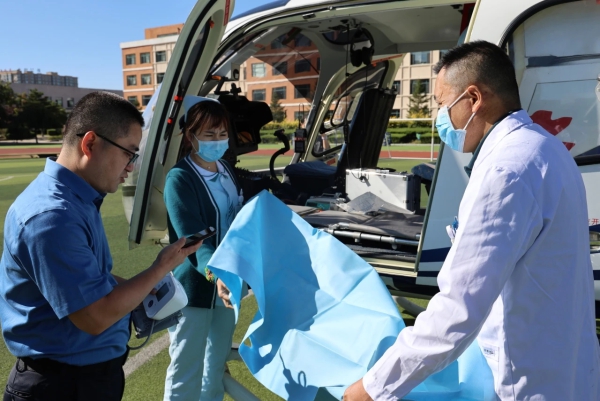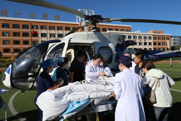 9月21日13时30分,吉林大学中日联谊医院航空救援直升飞机飞抵珲春市第一小学校上空,平稳着陆学校操场。这是珲春市首例通过空中转诊的患者。通过医联体协作,珲春市人民医院为珲春地区急危重症患者打通了“空中生命救援通道”,赢得了抢救的宝贵时间。
