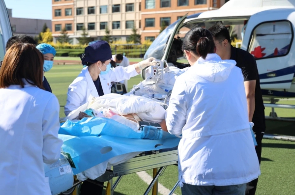 至此,珲春市首例航空救援行动在两家医院通力合作以及珲春市教育局和第一小学校的全力配合下,取得了圆满成功。抵达吉林大学中日联谊医院后,医护人员继续对患者进行救治。